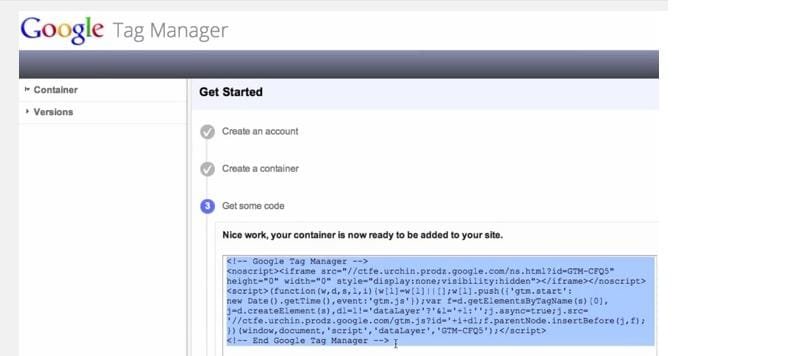 Now, you will be asked to set up a container. Containers include tracking tags like Google Analytics and AdWords.